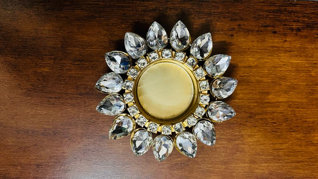 Coming Soon !! Clear teardrop crystal candle stand with double-layered gem design